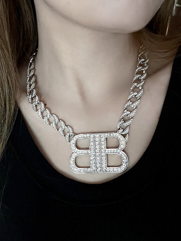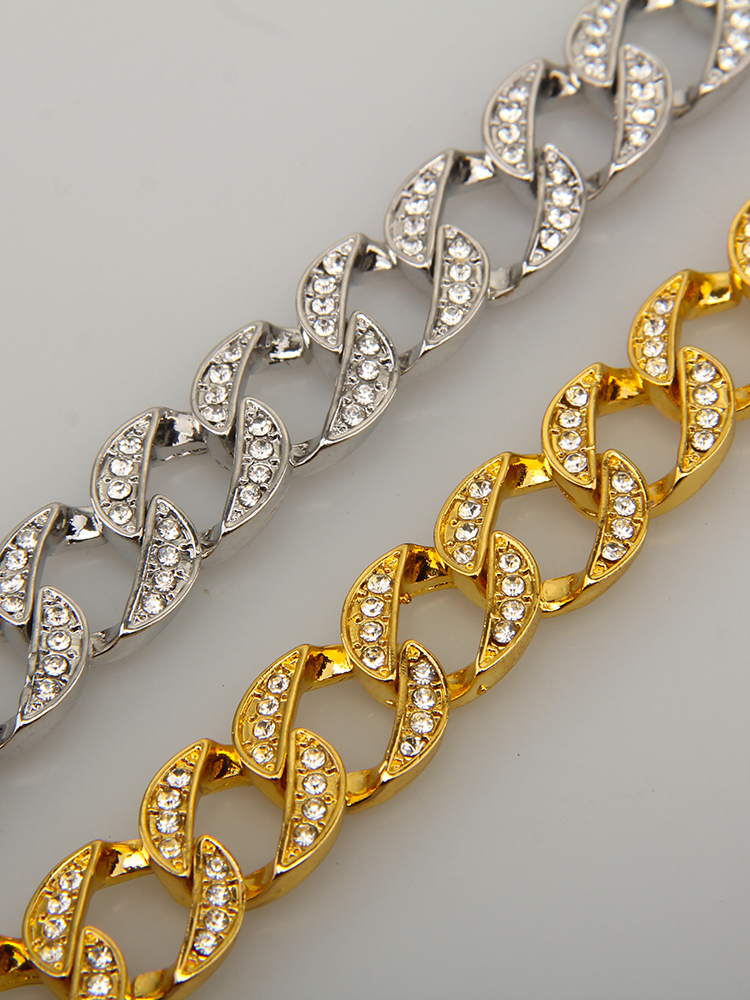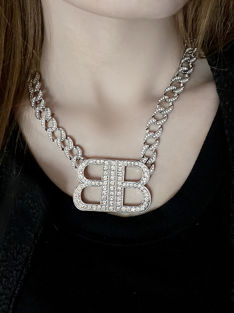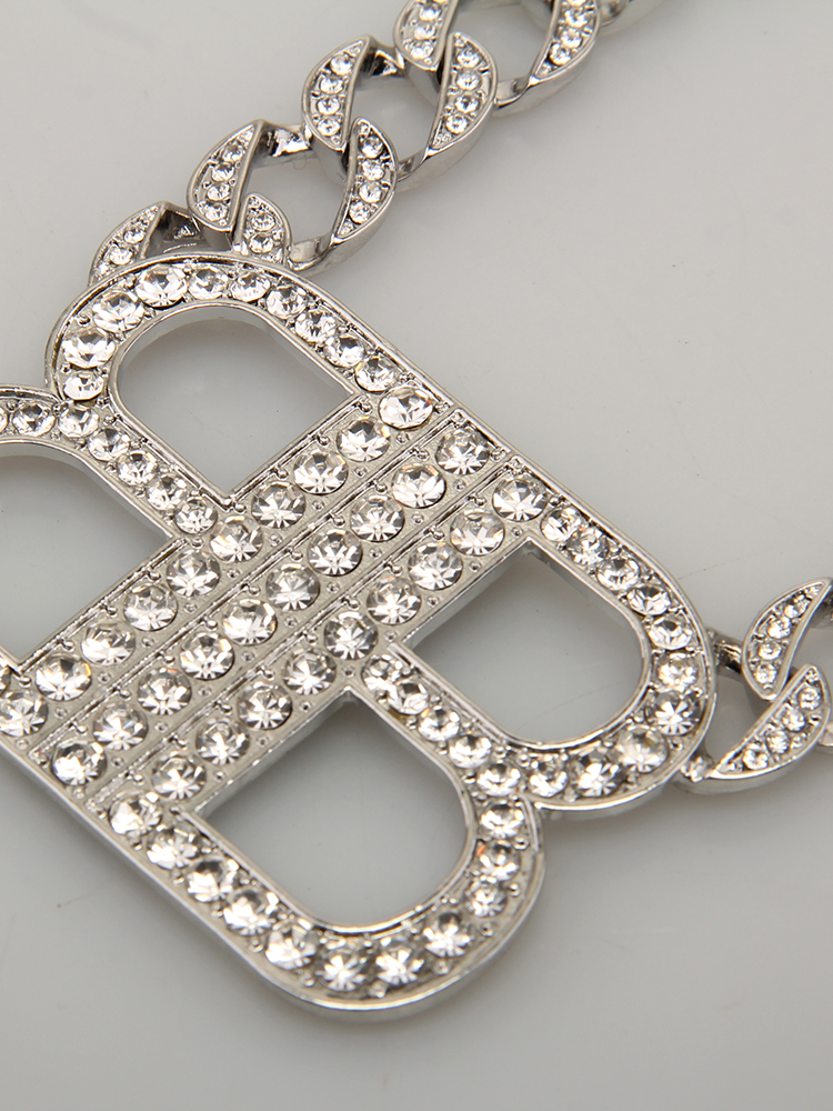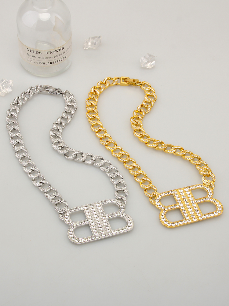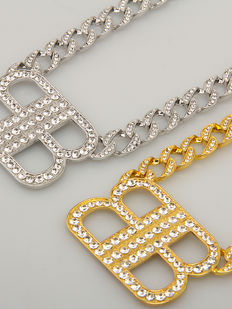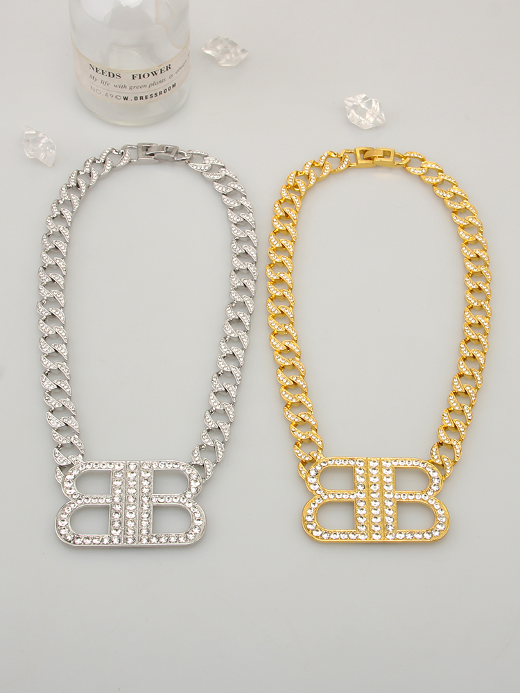INS French Style Retro Alphabet Thick Chain Trendy Rhinestone